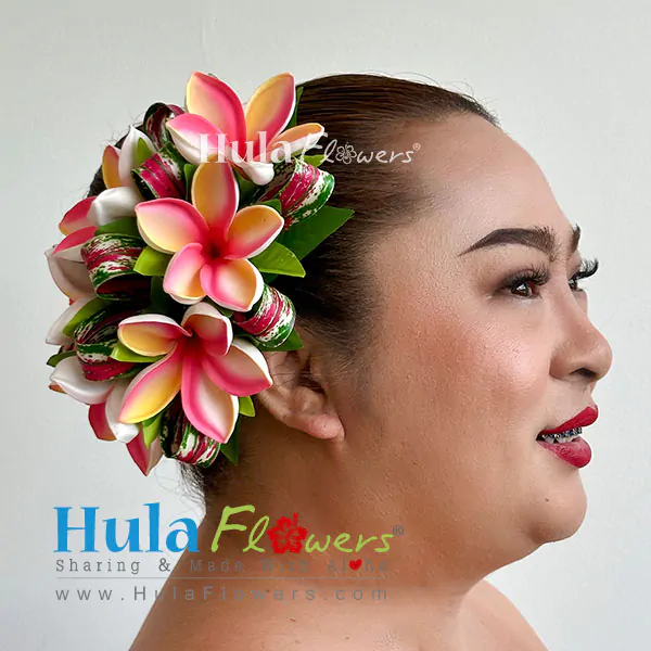 Our flowers are designed for Polynesian and Hawaiian hula dancers, weddin gs, beach parties, or any other special occasion. Makes a great gift, or create your own arrangements. You will receive many compliments because our flowers look “So Real.” We create new designs each week so visit us often to see our latest offerings.