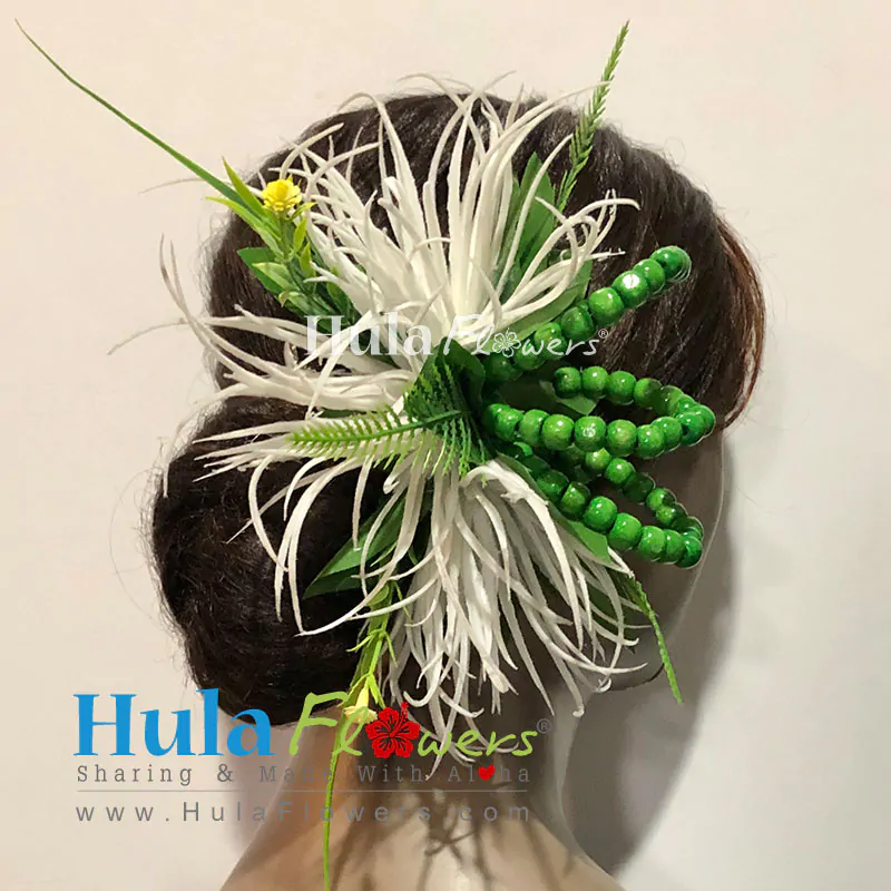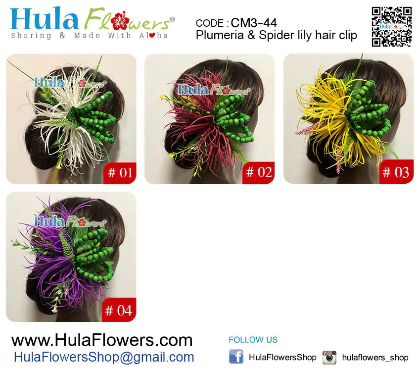 • Built on a plastic hair clip: 1″ x 4″ long